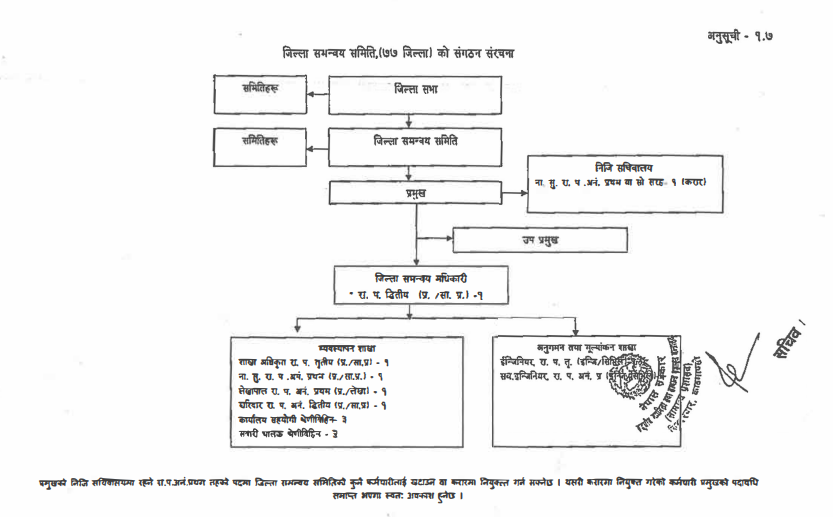 नेपालको संबिधान -२०७२ को धारा २२० उपधारा (७) ले व्यवस्था गरेको अनुसार जिल्ला सभाको काम, कर्तब्य र अधिकार देहाय बमोजिम छन्: क) जिल्ला भित्रका गाउँपालिका र नगरपालिका बीच समन्वय गर्ने, ख) बिकास तथा निर्माण सम्बन्धि कार्यमा सन्तुलन कायम गर्न सोको अनुगमन गर्ने, ग) जिल्लामा रहने संघीय र प्रदेश सरकारी कार्यालय र गाउँपालिका र नगरपालिका बीच समन्वय गर्ने, घ) प्रदेश कानुन बमोजिमका अन्य कार्यहरु गर्ने।